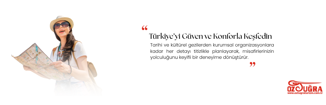 Öztuğra Turizm, şehir içi ve şehir dışı tüm gezi ve tur taşımacılığında güven, konfor ve planlı hizmet anlayışıyla fark yaratır. Misafirlerinize keyifli bir yolculuk, size ise sorunsuz bir organizasyon deneyimi sunar. “Yola Bizimle Çıkın, Türkiye’yi Konforla Keşfedin.”